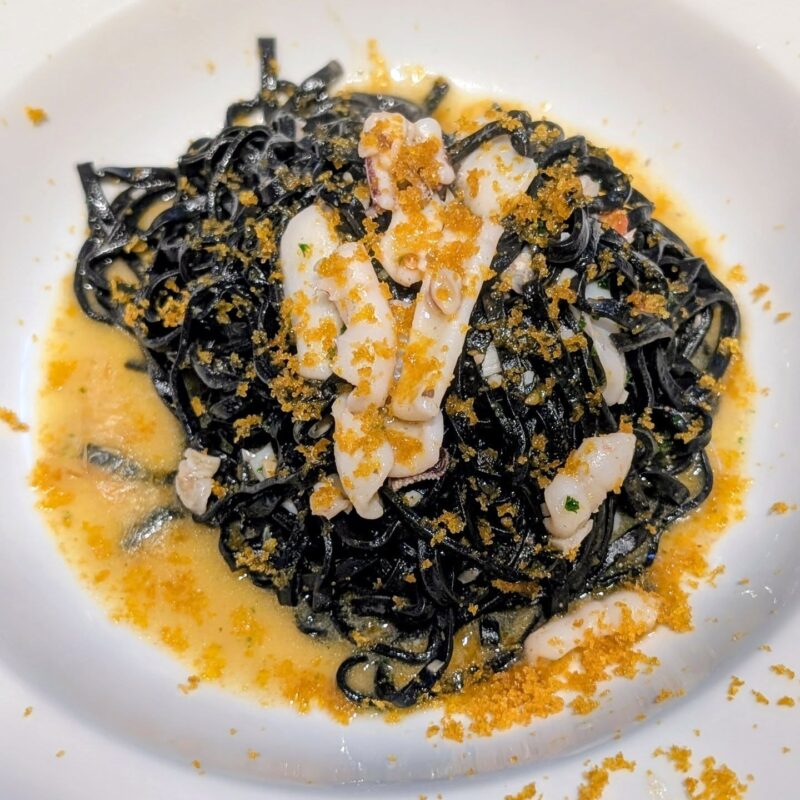 イカとからすみのオイルパスタ イカ墨を練ったタリオリーニです🤤