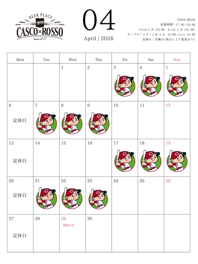 カープ坊やの日はカープのホームゲーム開催日となっております。